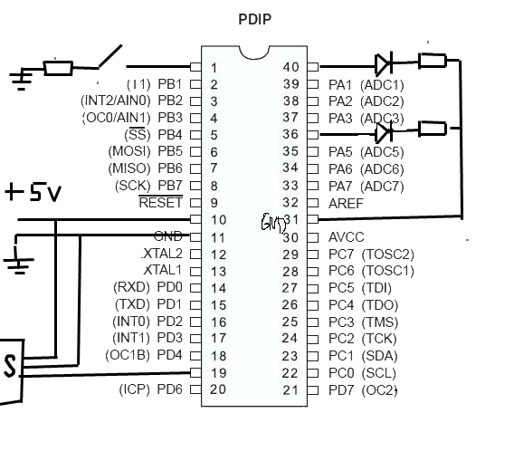 при этом загораются соответствующие светодиоды на выходах PORTB=00010001