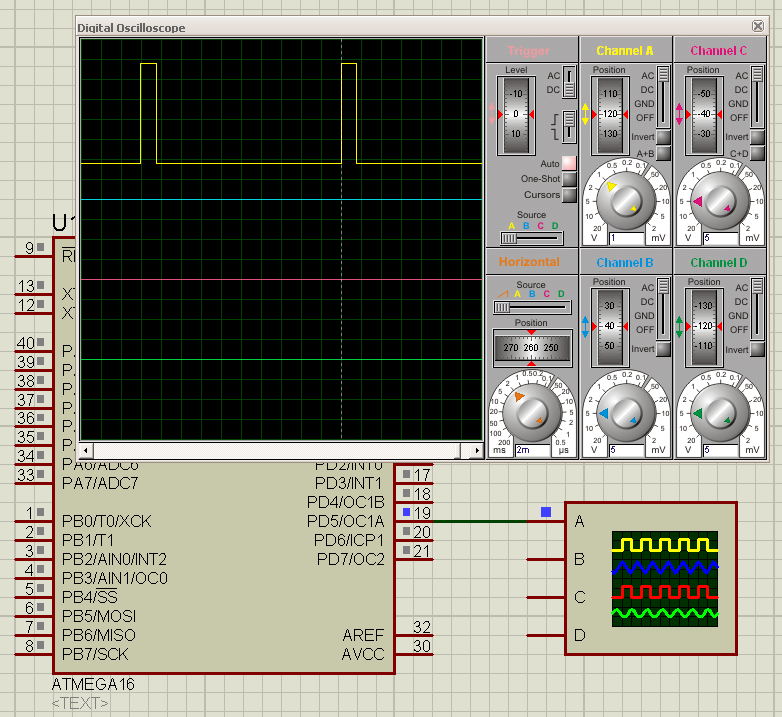 /* регистр OCR1A состоит из двух 8-ми битных регистров OCR1AH и OCR1AL запись в них нужно проводить в указанной последовательности! */