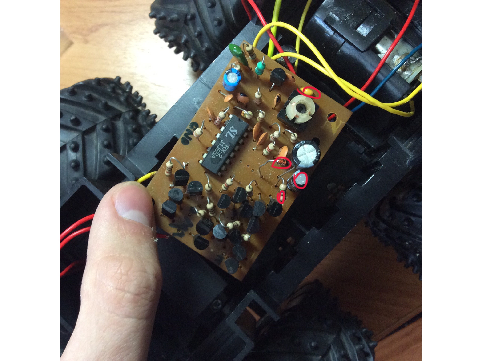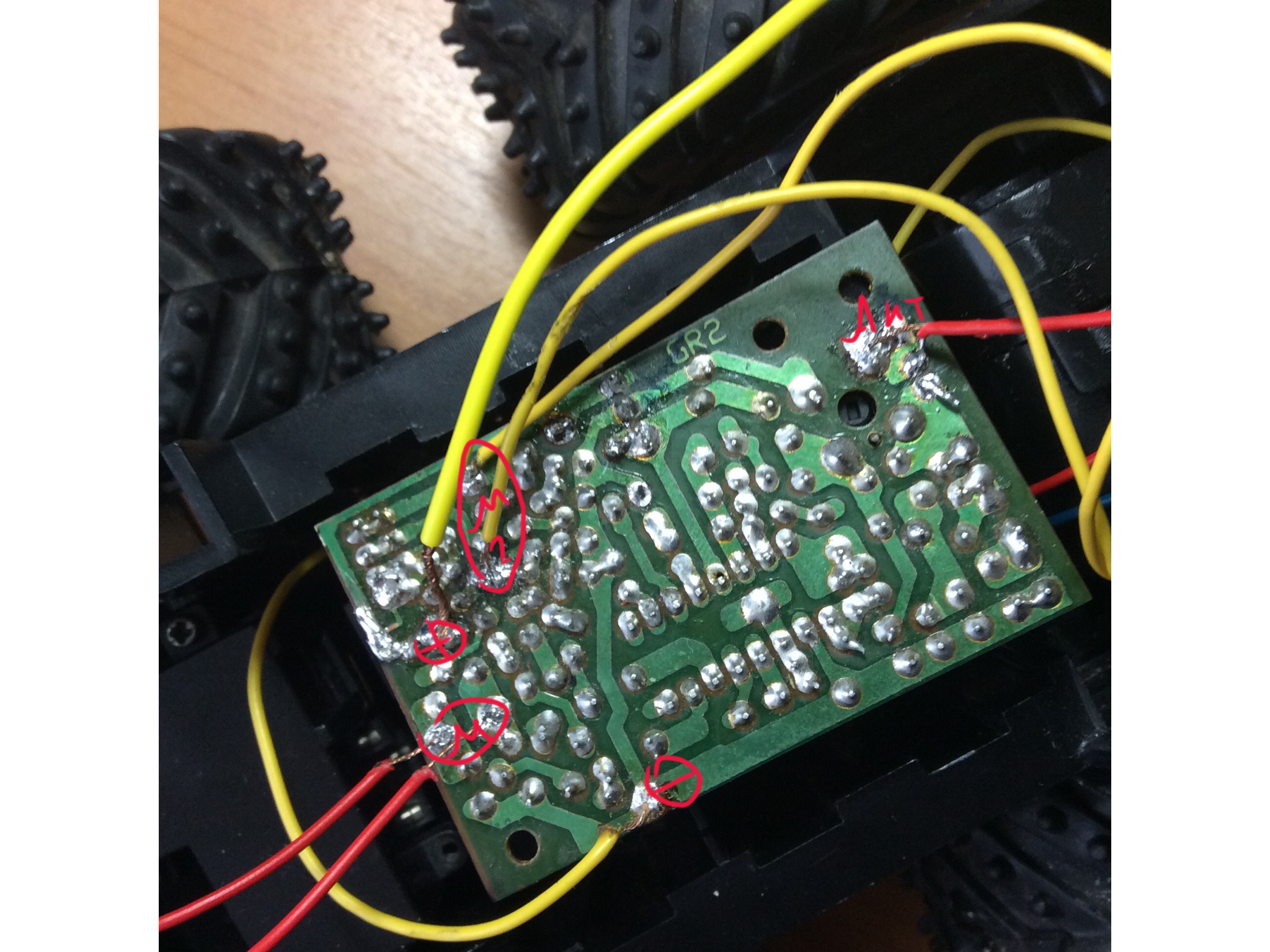 ЗЗЗЫ. Я игрушек починил не один десяток, поэтому оговорюсь - этих китайцев не понять вообще. Даже красный провод - это не обязательно плюс. И выключателем коммутируется не обязательно плюс, может и минус. Поэтому все надо проверять визуально.