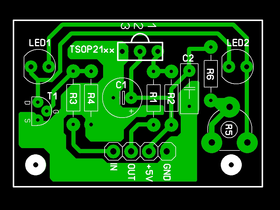 У вас модуль горизонтальный, а значит он отъест большой кусок площади шасси. Рекомендую делать ик бамперы вертикальными и втыкать их разъемом в основную плату. Второй ик диод не нужен (сами подумайте, ну зачем он? для дальности? вы и без него нужную дальность получите, никто же не ставит в ик пульты гирлянды светодиодов. Датчик с робозоны - не догма). Использование планара позволит сделать очень миниатюрный модуль.