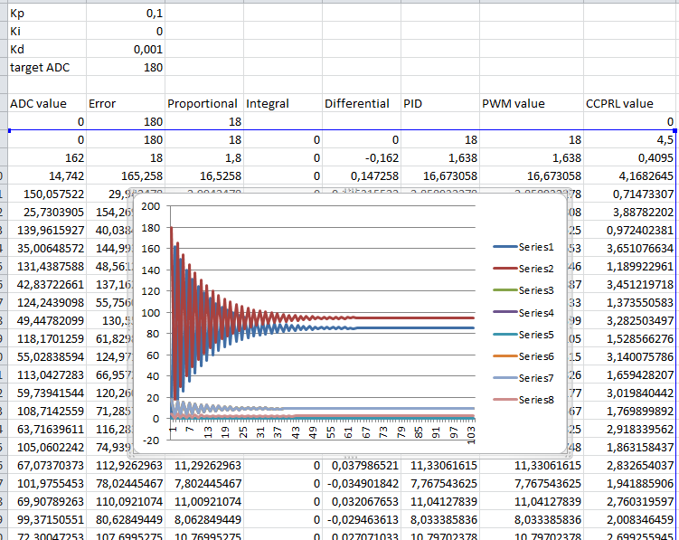 ))=DeaD= писал(а):А в чем вопрос? Приводите вычисления к целочисленным, убирайте деления, запускайте циклический опрос АЦП, по готовности АЦП переваривайте инфу и выставляйте ШИМ. Мне думается там всё впишется и в 10мкс