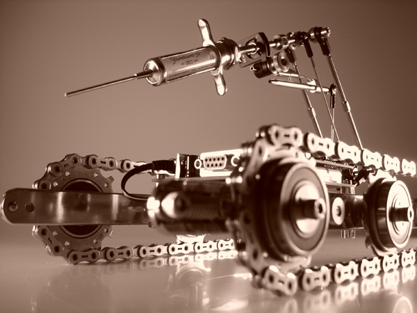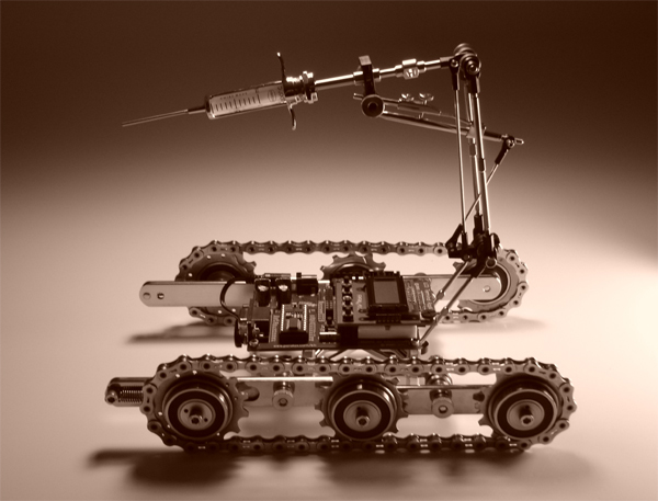 его первый робот был собран из вибродвижка и корпуса от телфона с шестеренками для красоты