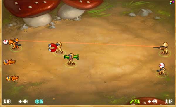 Апгрейд солдат в minitroopersПолучая деньги за победы в сражениях, вы можете улучшать своих бойцов. Так же у них появляются уникальные умения. Например на втором уровне бойцы получают возможность выбора “Favourite Target” – выбор части тела для поражения: