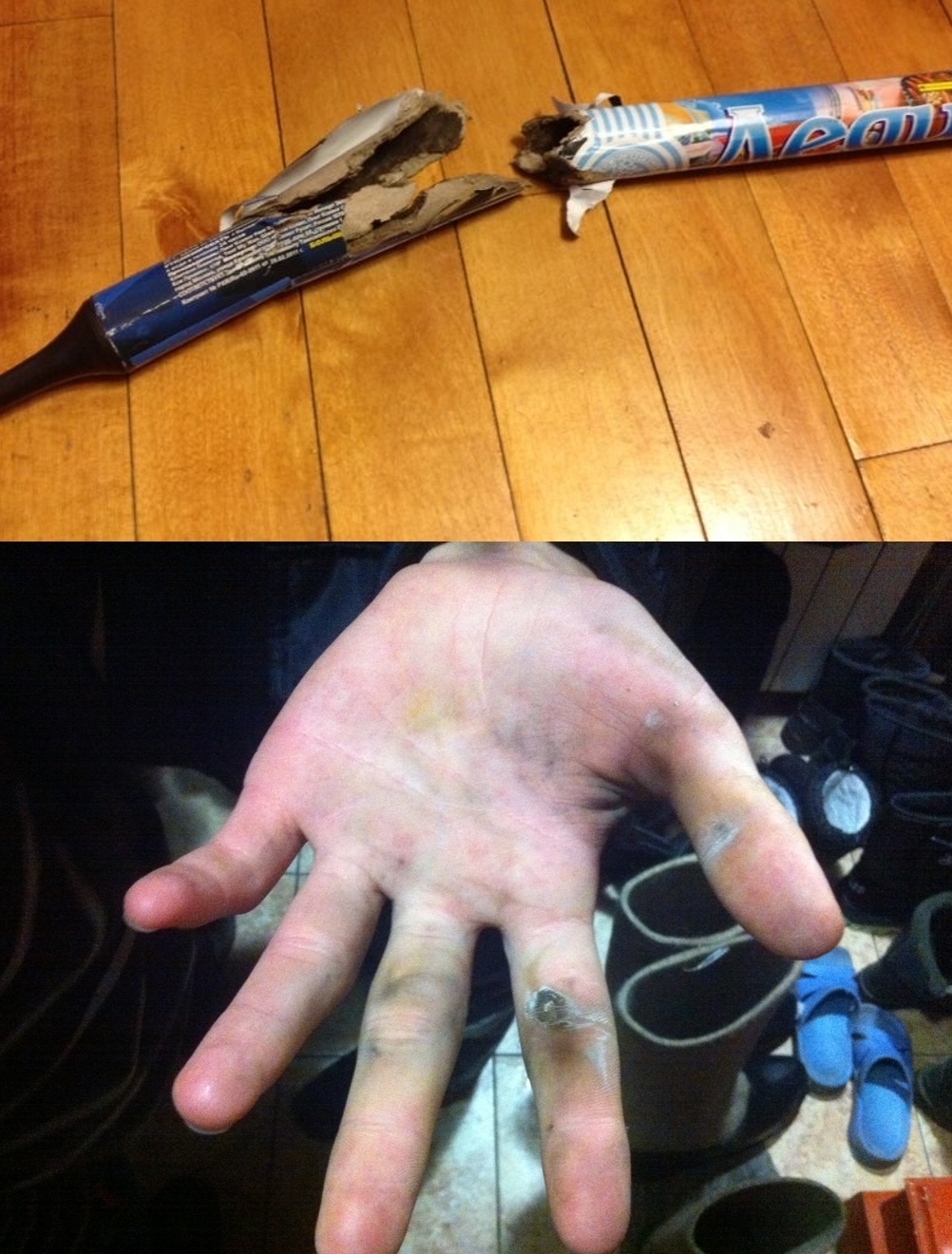 Ребята принесли на новый год 10 взрывпакетов настоящих, армейских. Такие гранаты с кулак из картона. 9 поочерёдно кинули, грохот дикий, восторг тоже. Кидаем десятый, вдруг откуда-то выбегает радостная овчарка, хватает его в зубы и бежит.... Из каждого рта вырывается Б...ТЬ...все аж присели... а взрывпакет не сработал