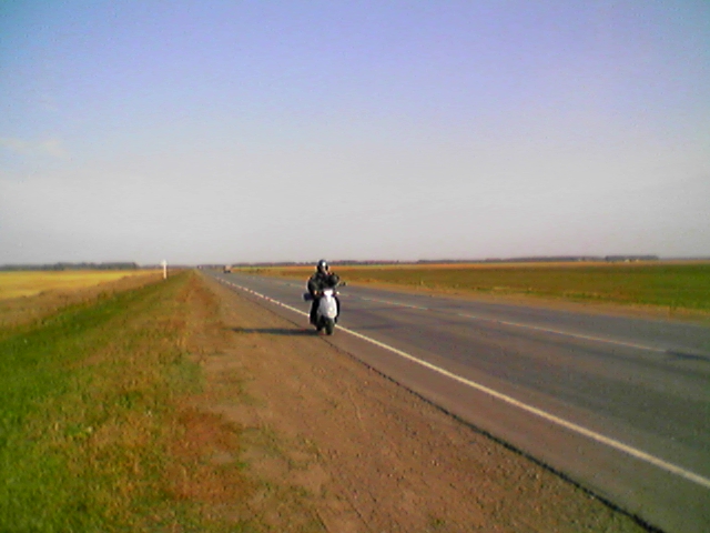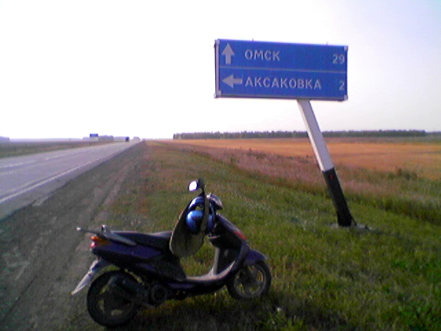 А на подступе к городу встретил меня наш скутерный чел - он ещё в мае так на своей моторашке ездил.