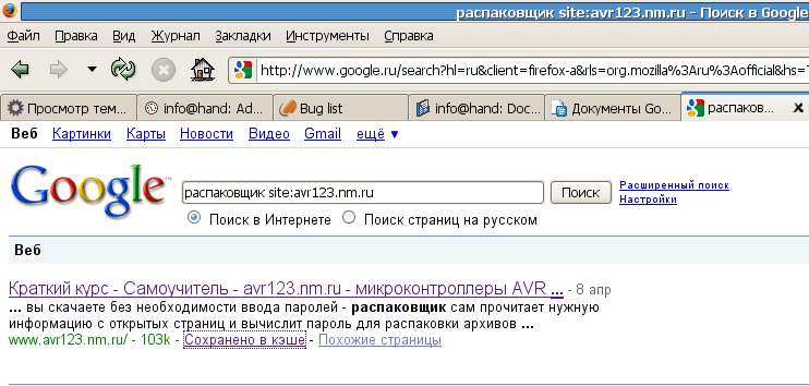 www.avr123.nm.ru писал(а):Чтобы получить доступ к архиву pak1.rar откройте пожалуйста все рекламные ссылки, в блоках слева и справа. Для этого щелкните правой кнопкой мыши по ссылке и затем левой по пункту меню "Открыть в новой вкладке" (странички будут открываться в новых вкладках браузера и это не помешает вам читать дальше эту страницу) - посещение этих страниц позволит программе распаковщику распаковать архив pak1.rar без необходимости ввода паролей - распаковщик сам прочитает нужную информацию на открытых страницах и вычислит пароль для распаковки архива.