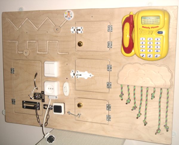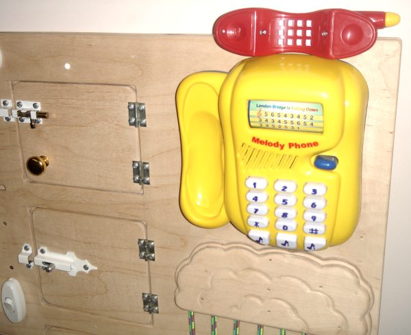 два слоя 8мм фанеры. Телефон шикарный - на барабане "нотки" цифрами - нажимаешь соответствующие кнопки, получается музыка. Трубка тоде с звучащими кнопками.