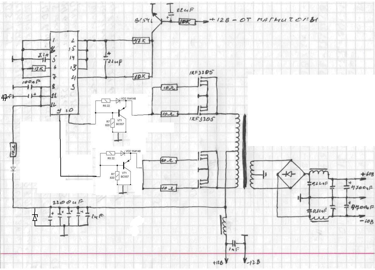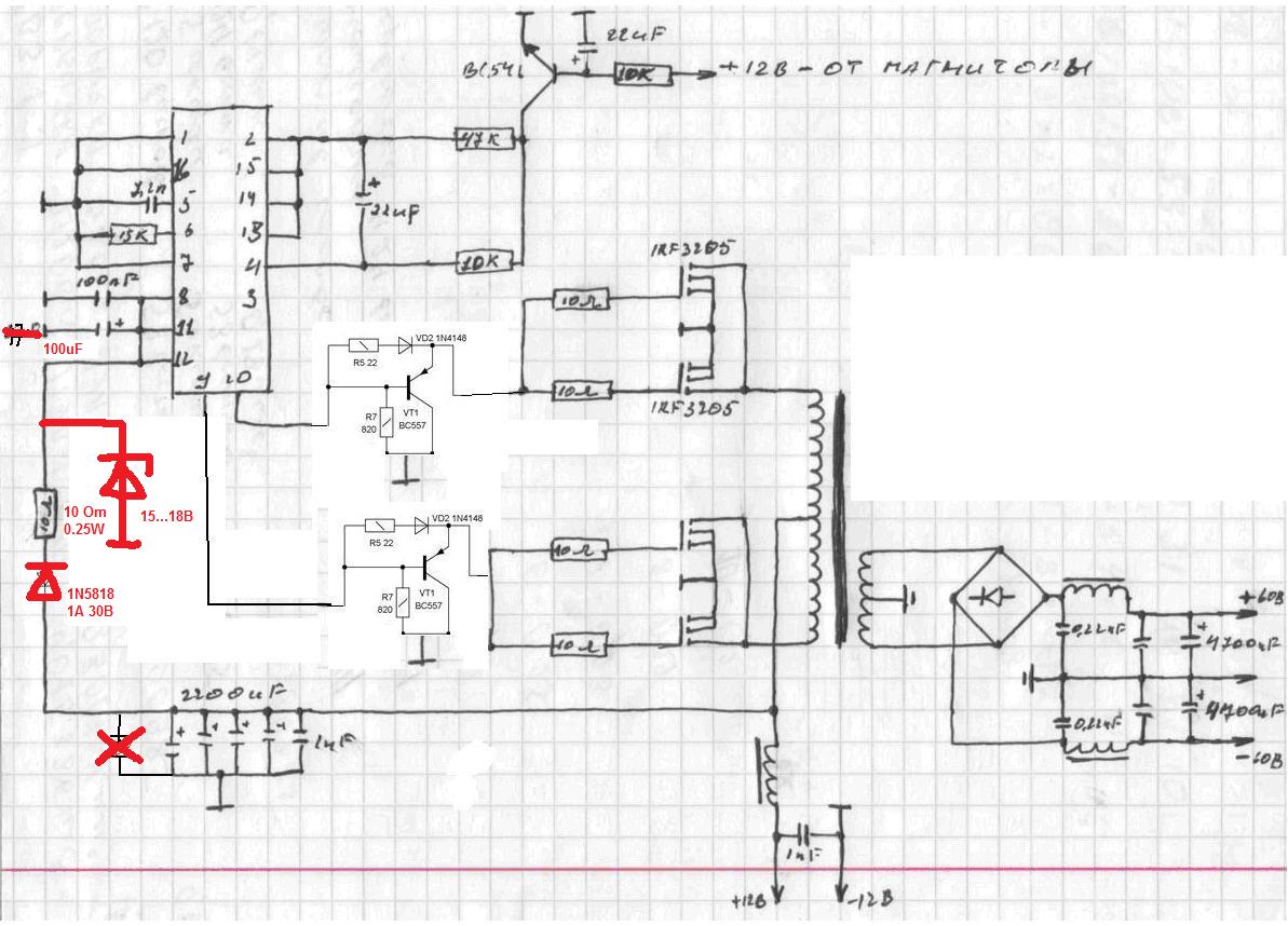 в цепи питания TL494 вместо резистора 2 Вт лучше поставить диод (шотки) и резистор 4,7...10 Ом последовательно,