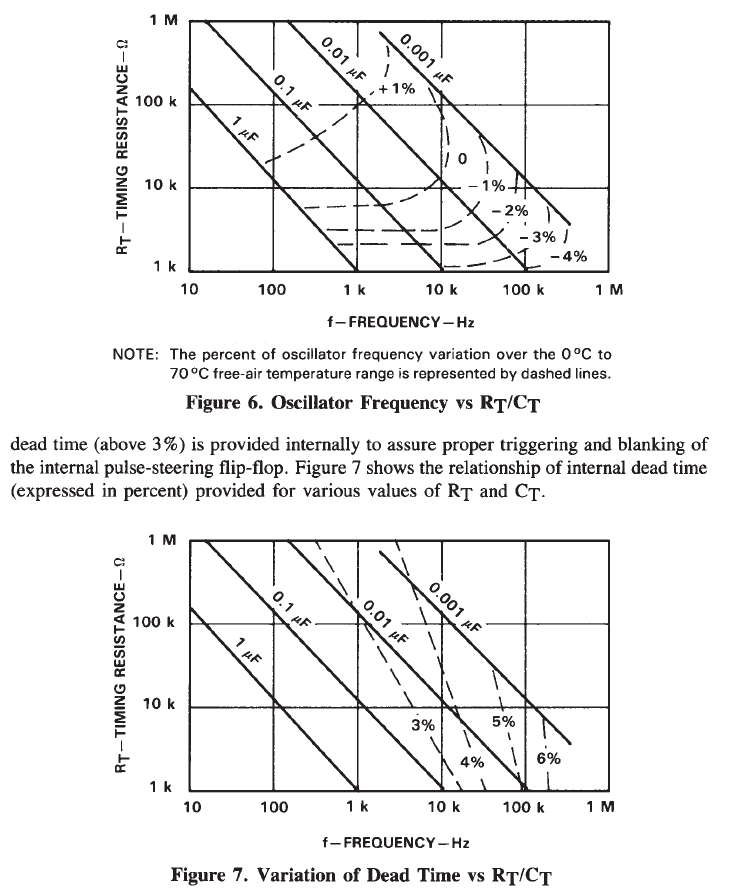 Увеличить длительность мертвого времени на выходе, можно подавая на вход регулировки мертвого времени (вывод 4) постоянное напряжение в диапазоне 0..3,3В.