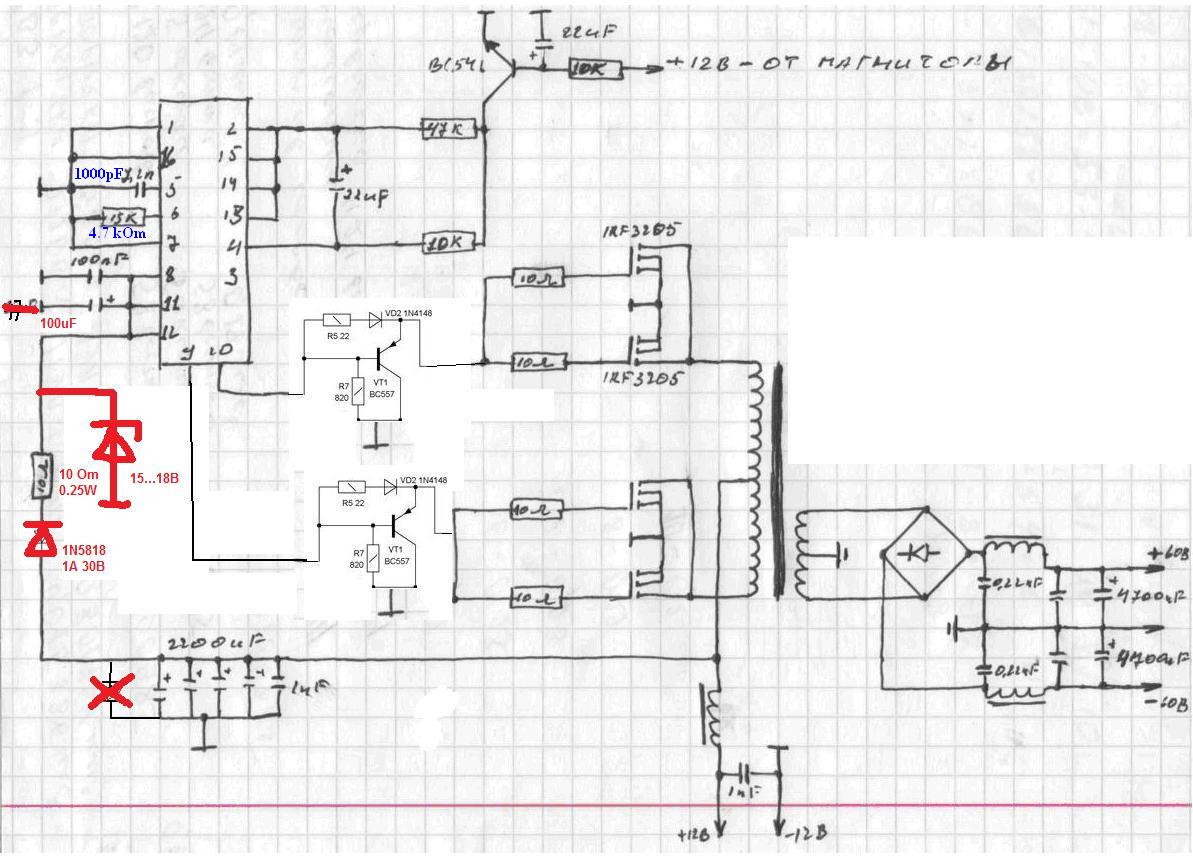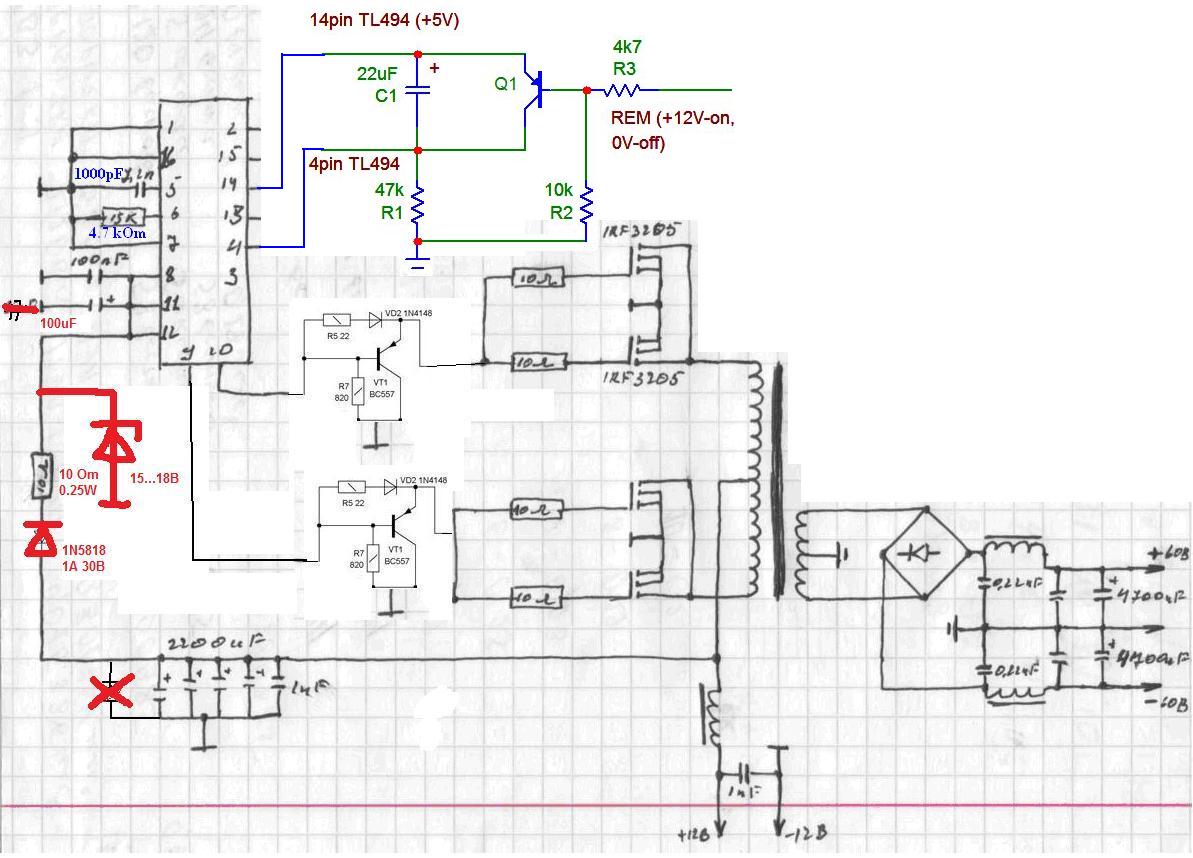 П.С. остался все же один момент о котором я писал и который меня смущает, в момент подачи питания на ИИП на его выходе появляется +-30В, хотя на линию REM (на схеме обозначена как +12В от магнитолы) ничего не подано.