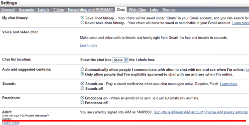 3. Заходим во вкладку Chat, ищем снизу настройки AIM. Это и есть аська. Нажимаем кнопку Settings, вводим логин и пароль.