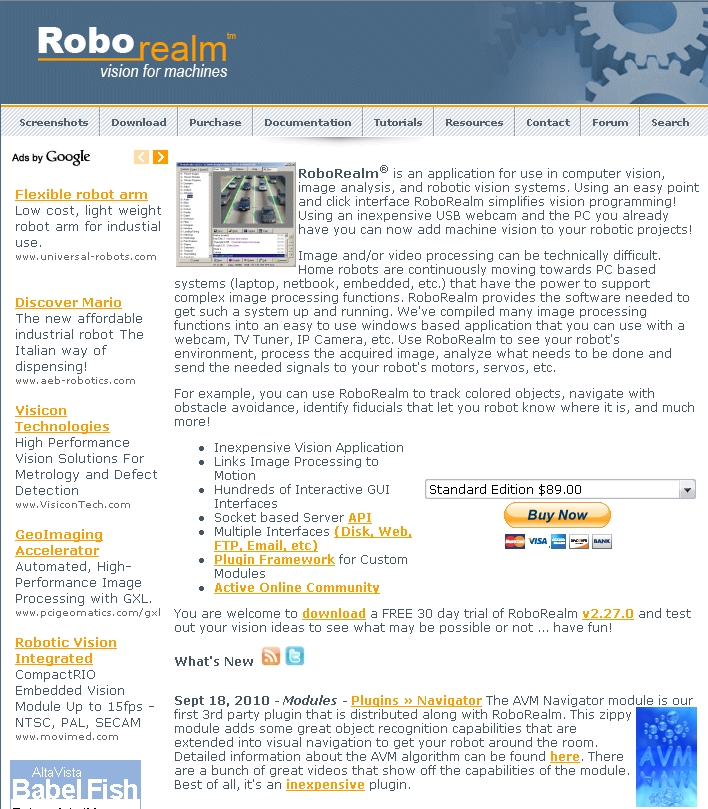 Смотрите на http://www.roborealm.com с понедельника 20 сентября, текущего года.
