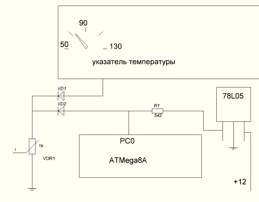 резистор в плече делителя 542 Ом. Напряжение которое приходи с приборной панели на терморезистор 12 вольт.