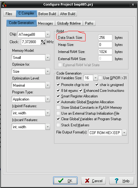 и так получилось что матрица в 6кбайт не влезала поэтому и задал такой вопрос. Урезал data stack до 1кбайта все работает не ругается всем спасибо