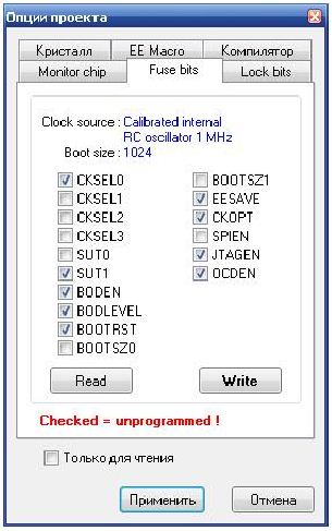 Посмотрел предложенную программу. Точно, скрин совпадает. Тогда вопрос, если прошивать в Пони или AVRStudio-4- как устанавливать галочки?