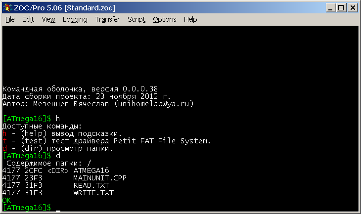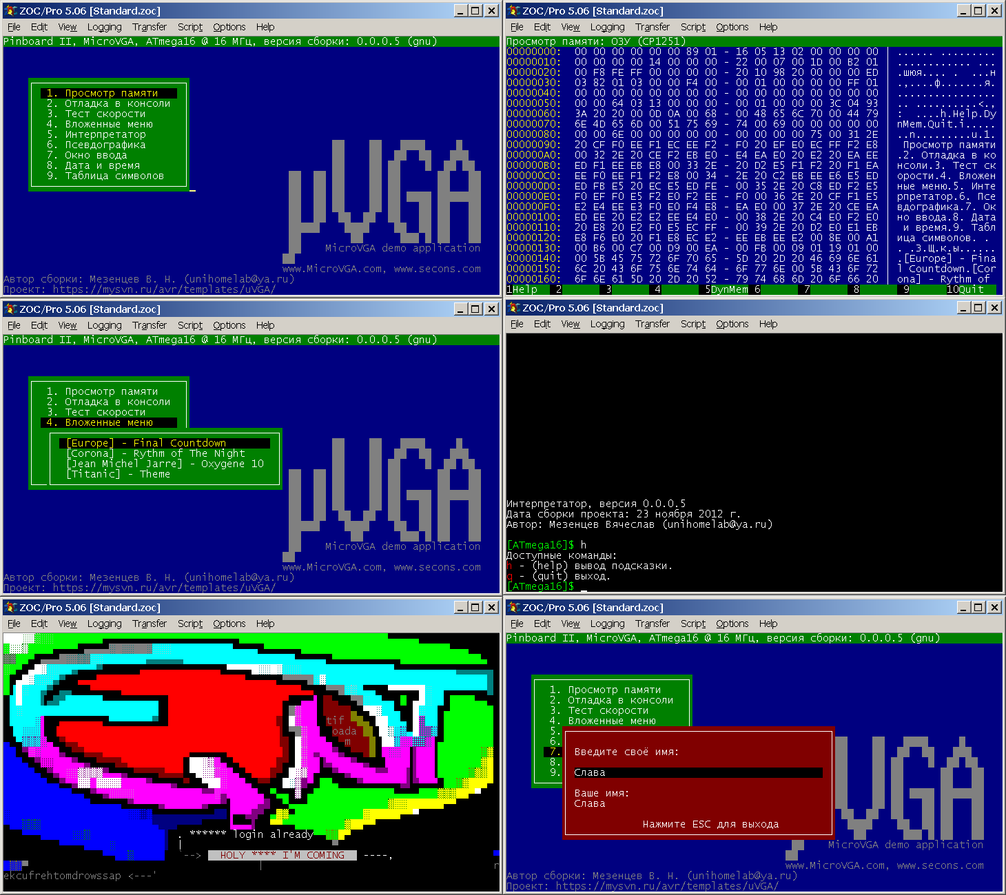 Пример 3. Пример проекта на основе шаблона ATmega16: MicroVGA conio/user interface library.
