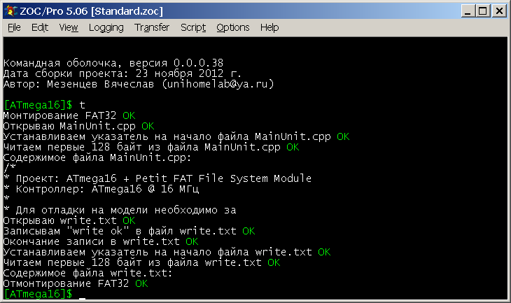 Пример 2. Проект на основе шаблона ATmega16: uSD с модулем Petit FAT File System.