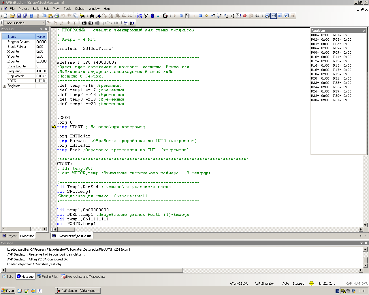 ; ПРОГРАММА - счетчик электронный для счета импульсов