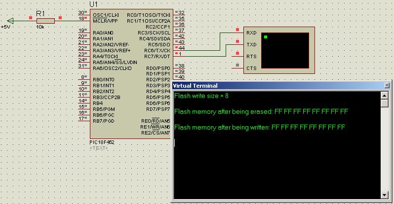 [U1] PIC18 model release 6.9 SP5 simulating 'PIC18F452' device.