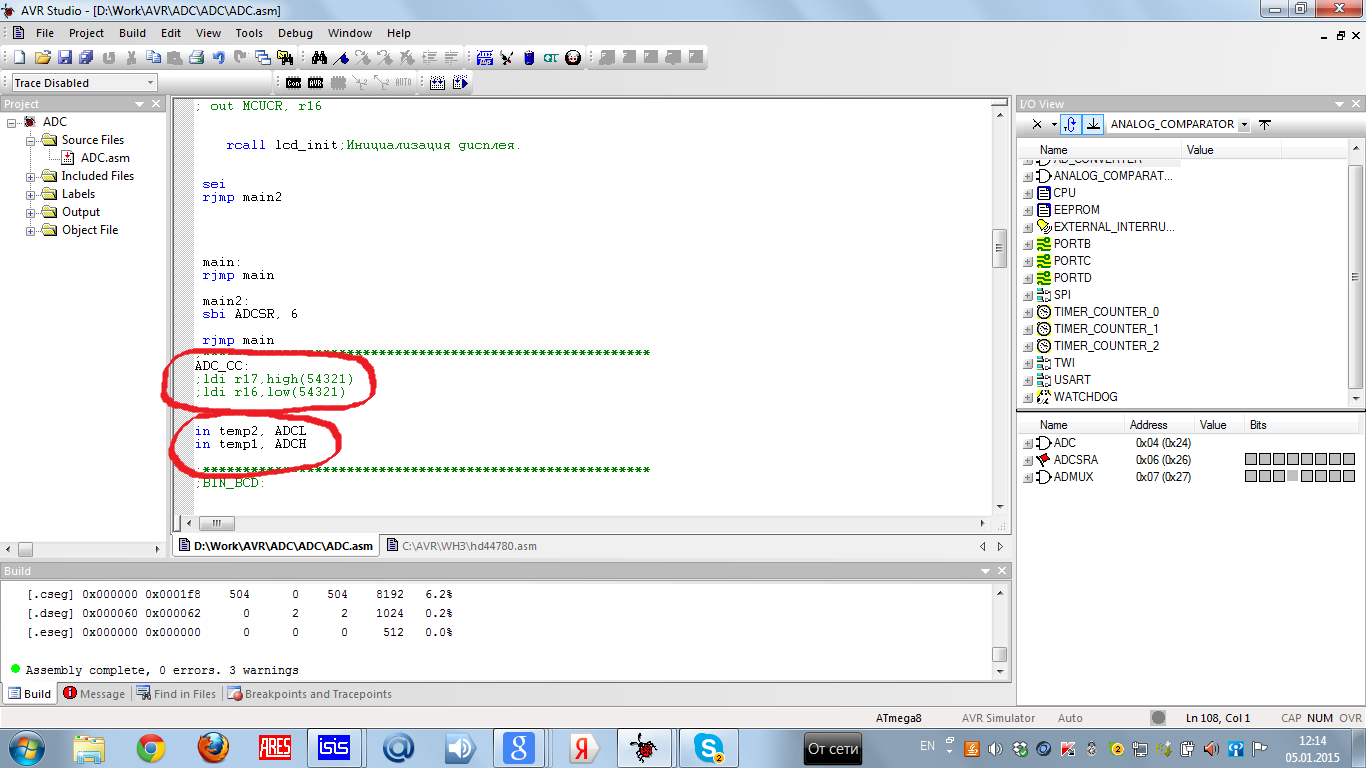 пишу только на ASM. В инете не одного примера АЦП на ASM и Atmega8.