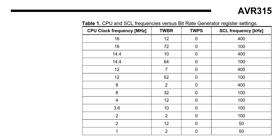 Значение 72 для регистра TWBR взял из атмеловского аппноута 315 (см. скрин). Фунцкия segment_write_num(n) выводит свой аргумент на семисегментный индикатор для отладки. Валится всё на передаче адреса, после передачи адреса выполняется такой код