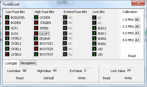 Изменение бита CKOPT в фьюзах ни на что не влияет.