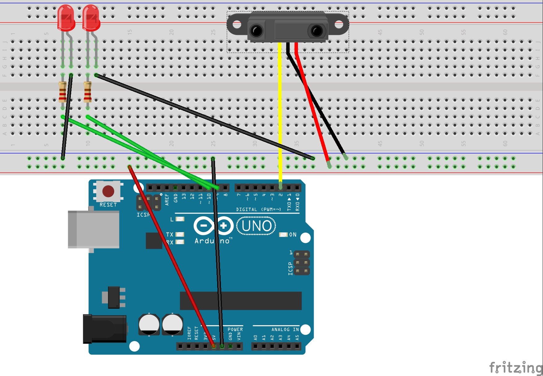 https://yadi.sk/d/YRfu9uaP0Lcjc , только для 2 светодиодов , не работает . Точнее работает но как то отдельно , отдельно можно узнать код кнопок скетчем из примеров в IDЕ, отдельно можно проверить светодиоды Blinkом , а вот чтоб вместе не хотят . И как бы все понятно в плане скетча что да как , но вот почему не работает хз. Взял другой скетч у другого товарища, конденсатор не ставил ибо нет в наличии сейчас , но скетч заработал , но почему то виснет рандомно ,в каком то любом месте . Подскажите в чем могут быть проблемы.Библиотека IRremote последняя обновленная да и предыдущими такая же проблема.Скетч и фото (ИК приемника не нашел в библиотеки датчик расстояния воткнул) прилагаю