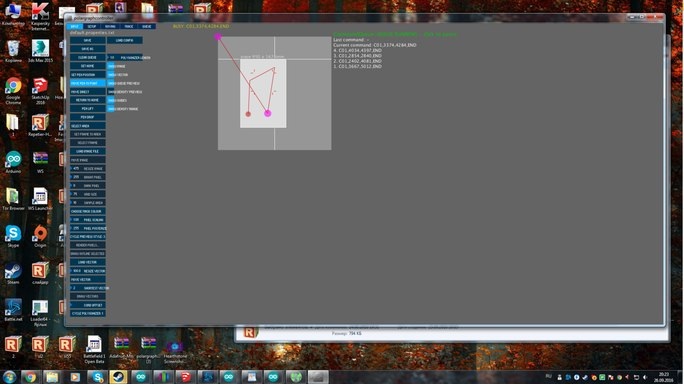 Есть вариант такой прошивки и под рампс. А, что, почему бы и нет, подумал я? Гитхаб в помощь https://github.com/PingguSoft/Makelangelo_RAMPS , только вот никакие действия эта вещь не отрабатывает, будто и не включены двигатели, даже удержания нет.
