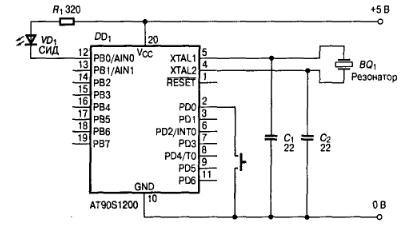 Во вложении простейшая схема(из книги), на которой вывод PB0 отвечает за включение/выключение светодиода, а вход PD0 - за проверку нажатия кнопки. На PD0 устанавливается подтяжка. С PB0 вроде бы все понятно: если подана лог.1, то светодиод не горит, если же на PB0 подать лог.0, то идет ток и светодиод загорается. А вот как быть с PD0 и кнопкой? В книге поданы, на мой взгляд, два абсолютно противоположных примера, хотя автор говорит, что они действуют одинаково.