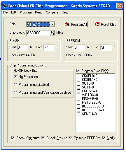 Boris317 писал(а):Здравствуйте, нужна ваша помощь! Запорол уже 4 Тини13. В общем, после первой прошивки через 5 проводков компьютер перестаёт видеть микроконтроллер и повторная прошивка становится невозможной.