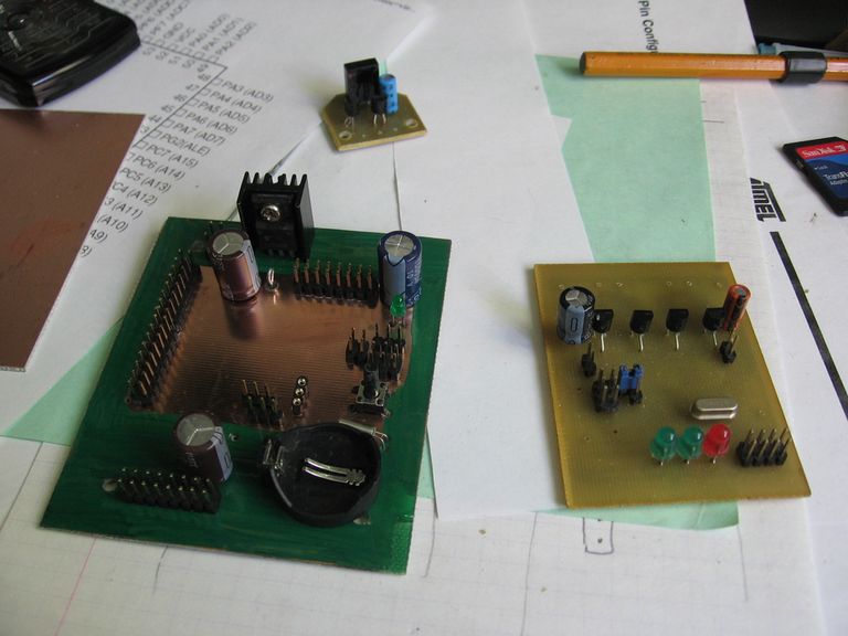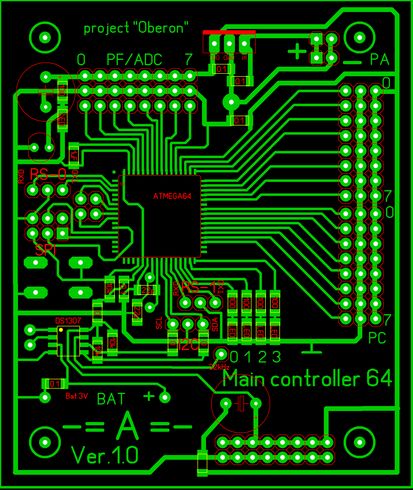 В общем нашел время продолжить работу над модульным роботом - сделал еще одну платку - центральный контроллер. Делал просто и сердито - только самое необходимое. (разводка портов, АЦП, интерфейсов, прерываний и часы реального времени) Все остальное будет висеть на шинах (SPI и I2C). Контроллер моторов уже готов, скоро начну протоколы обмена придумывать... :roll: