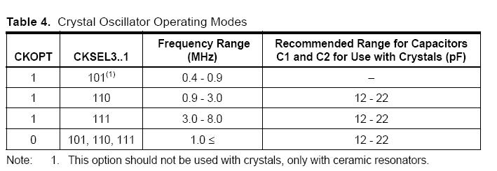 если от 3 до 8Мгц то CKSEL=0111. В моём случае нужно выставить CKSEL=1000. Я правильно понял?