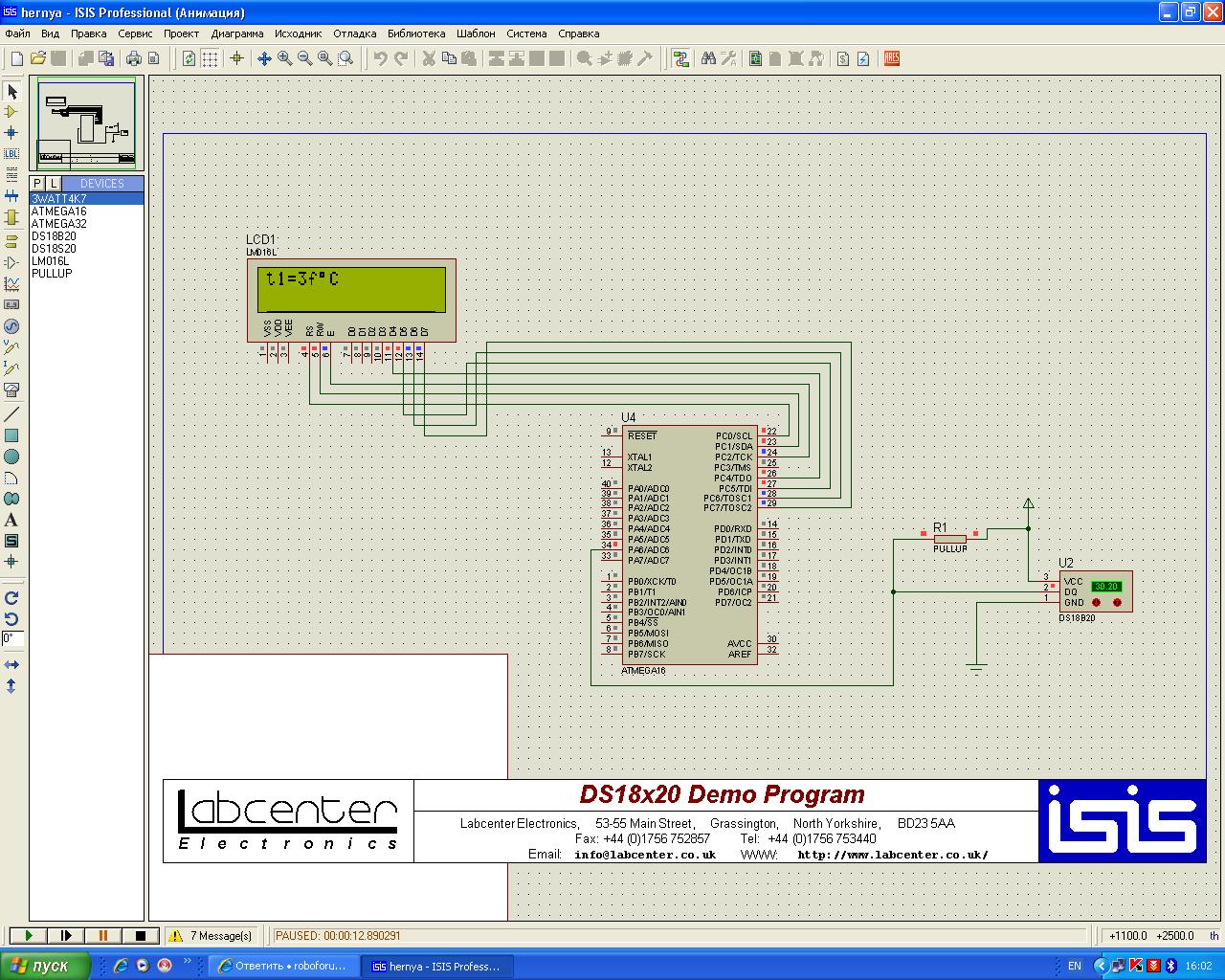 Как вы уже наверное знаете функции print(f)/scan(f) отнимают довольно серьезное количество памяти, поэтому их обычно либо разделяют, создавая версии для типов чисел которые предполагается выводить, либо как это сделано в CVAVR - такая опция выбирается в настройках компилятора. А именно Options->C Compiler->sprintf(f) Features. Раз у вас выводится хоть какой-то результат вы эту опцию уже по всей видимости изменяли и она стоит в положении "long, width". Проблематика же в вашем случае состоит в том, что при выводе температуры, в экземпляре примера предоставляемого библиотекой CodeVisionAVR используются числа с плавающей точкой (float, что собственно из-за своих размеров весьма спорно для этого класса контроллеров, впрочем для примера вполне сойдет), а именно параметр %f (если быть точным %+.3f - то есть будет выведено три цифры после запятой) передаваемый в sprintf(). Естественно, буфер который будет применятся в этой функции при параметрах "long, width", а именно long int, ни в коем случае не сможет корректно принять числа с типом float. В итоге на вывод пойдет совсем не то что хотелось бы... Выход прост – просто выберите значение (которое кстати и стоит в этом проекте по-умолчанию) "float, width, precision".