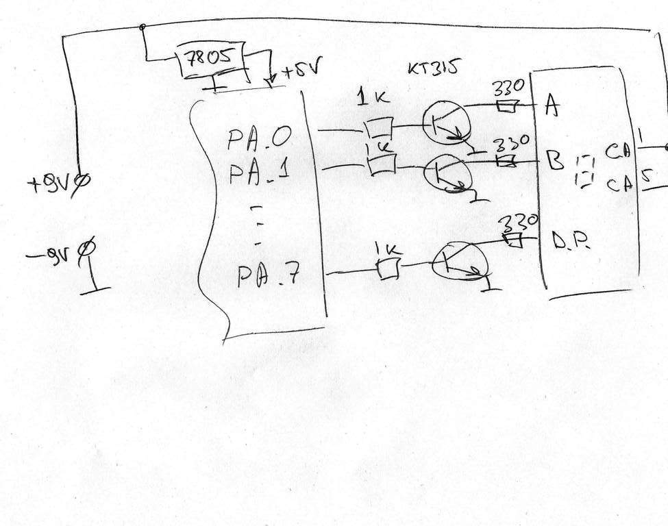 блин если каждый светодиод 1.8 вольт кушает то чтоб высветить сигмент "А" надо 7.2 вольт, так как там 4 светодиода. получается что прямо от ножки моего atmega8515 запитать не получиться, так как на ножке у меня примерно 5 вольт. (я правильно рассуждаю? ) ЧЕ делать то тогда? через тринзисторы чтоли управлять надо с доппитанием? помогите, люди! че делать?
