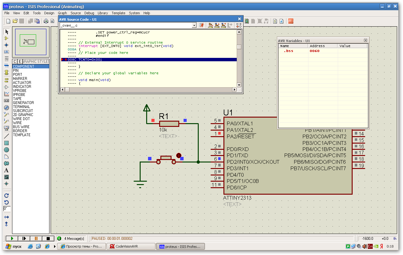 ЗЫ: ещё интересно то что AT90S2313 нормально работает в любой версии протеуса, в т.ч. и 7,5 SP3...