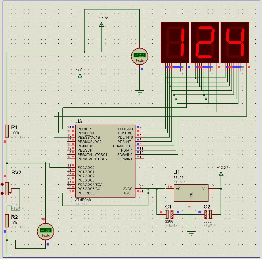 Но у меня 830 АЦП отображается как 18,2, а если крутить подстроечник значения пляшут в разные стороны. Крутишь в сторону уменьшения значения вначале уменьшаются, а потом растут, потом снова уменьшаются, в другую тоже самое. Можно даже поймать момент когда на индикаторе будет то 1,2В, то 14В и так будет устойчиво мигать.