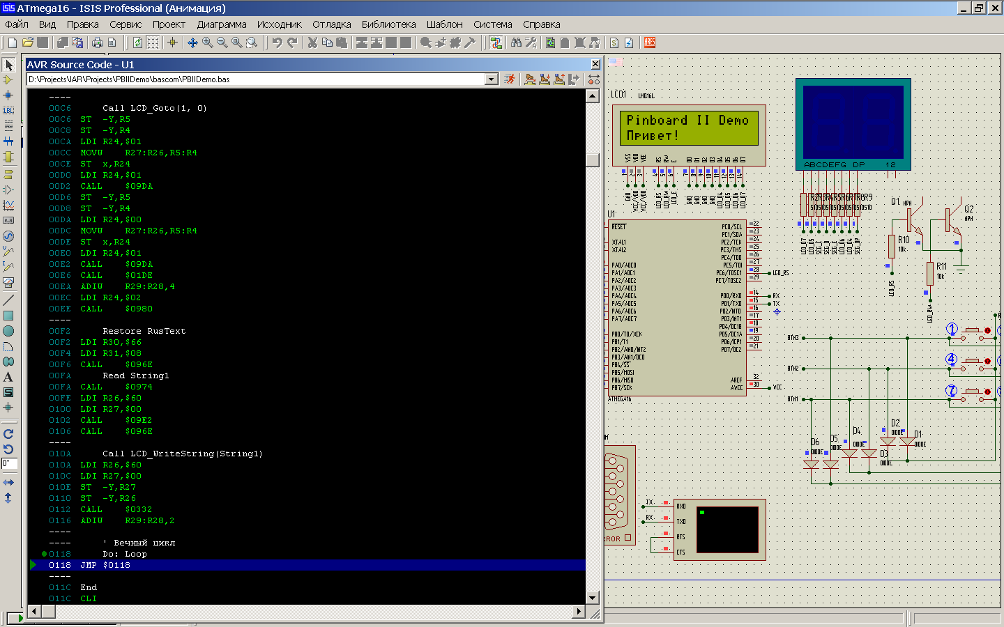 Я думал что все проделанное мной было напрасно, но тут возникла мысль что возможно симулятор просто «глючит» (до этого «заливать» программу в МК не пробовал, отлаживал в симуляторе), «залил» программу в МК и оказалось что так и есть. На LCD выводятся русские буквы.