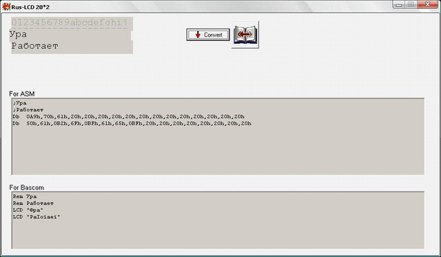 С помощью нее можно переводить русские буквы в «непонятные» для нас символы, но вот зато для LCD это как рас и понятные символы.
