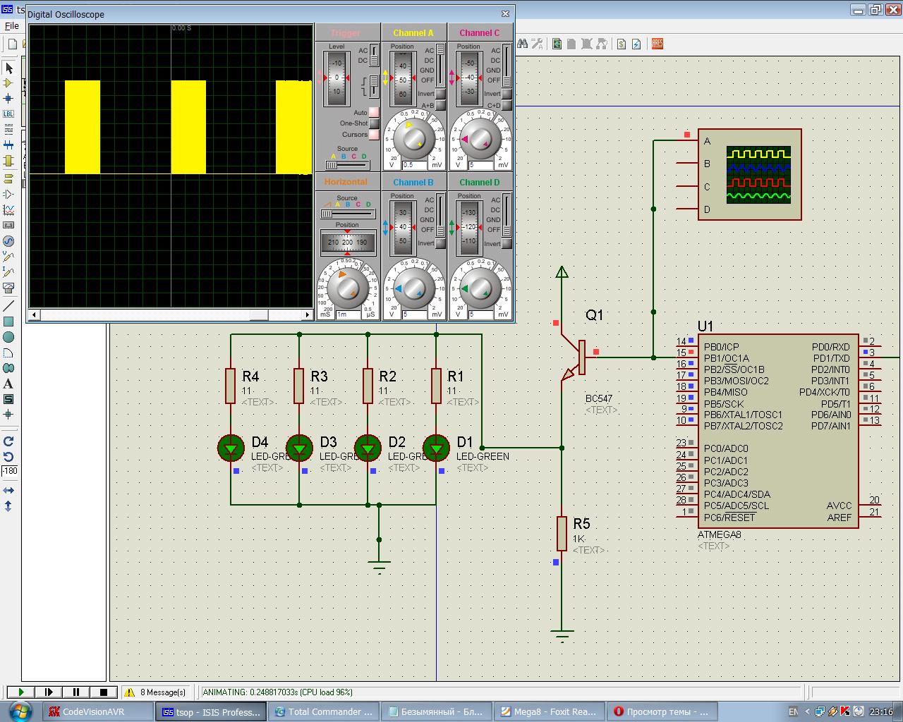 Возникла следующая проблема: переписал прогу для работы с TSOPами, зашил прогу в МК, проверил, все заработало нормально. Но через три включения (или около того) электроники ик-диоды погасли, (я предполагаю что-то с шимом не так стало). Взял другой МК, прошил, и картина повторилась. :cry:, при этом оба МК работают, тк данныы по USARTу передаются верно, диоды тоже работают.