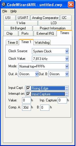 Далее усложняю задачу, и хочу измерить сигнал длительность 400мкс, с точностью 10мкс, соответственно таймер конфигурирую так - 8000кгц, значение CompA = 50h (прерывание каждые 0,00001сек), тут и начинается ерунда, судя по Watch Windows в протеусте, таймер вылетает иногда за значение 80.