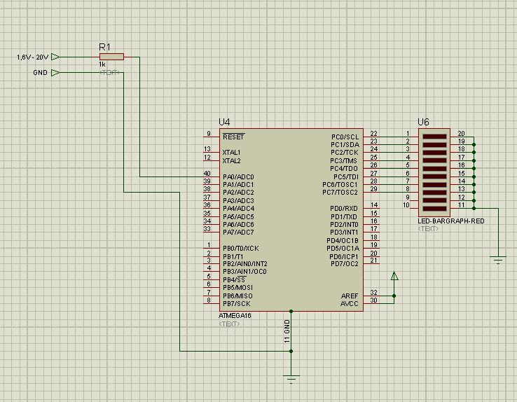 от регулируемого источника питания подаю напряжение на GND и PA0 , мультиметр показывает 1.6 вольта. подключил к мк, все светодиоды загорелись и мк завис. попробовал напряжение подать через сопротивление 1кОм, все ок, меняю напряжение, диоды меняются, одно но сопротивление перегревается. и не совсем понятно как теперь по этим светодиодам определить какое напряжение.