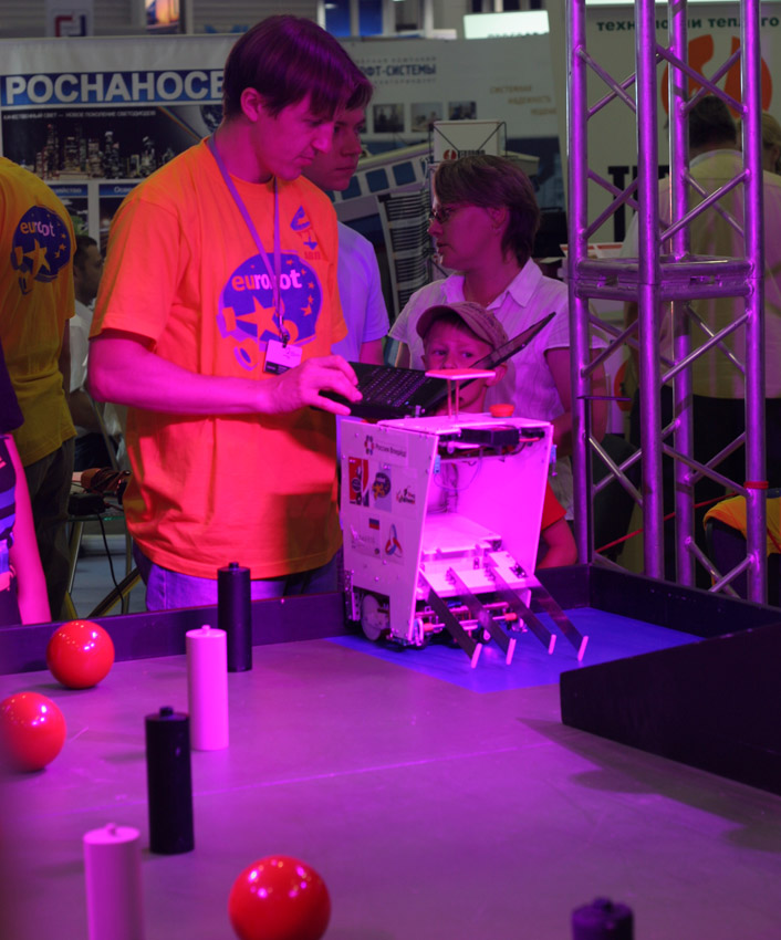 Ребята с МГУ чего-то отлаживают уже в софте (добрые организаторы видимо решили добить их робота креативным освещением