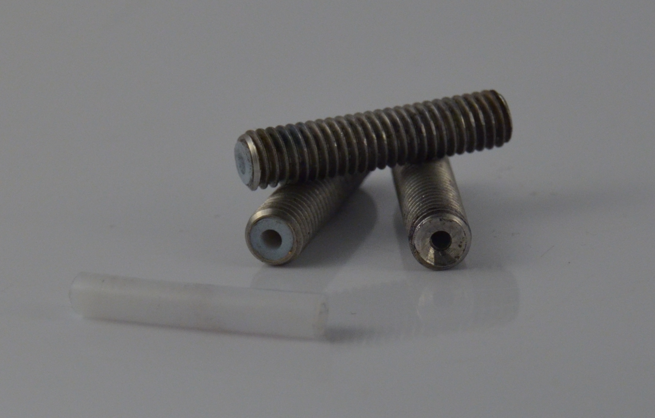 Латунная трубка для HotEnd MG. (Длинна 36мм. Под нагреватель типа "кубик" (H=9 мм)). Под пруток 1.75 (отверстие 2мм). Резьба М6.