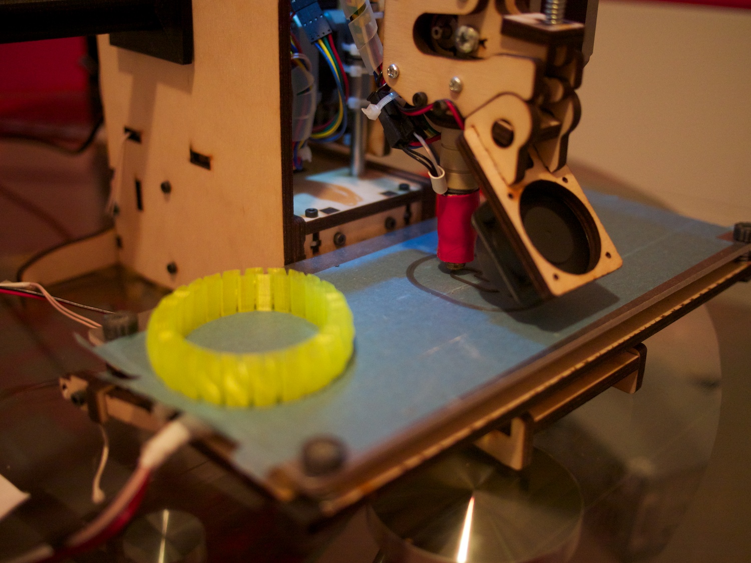 3) Установлен подогрев платформы — разогревается до 50C за 7-10мин. Этого достаточно для печати PLA
