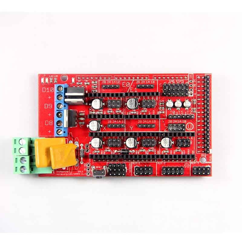 На базе платы Arduino Mega 2560 R3 устанавливается контроллер RAMPS 1.4, который включает в себя пять плат-драйверов шаговых двигателей Pololu A4988. Данная конфигурация позволяет значительно упростить обслуживание контроллера в случае перегрева или поломки, а так же оптимизировать место установки на корпусе принтера. Это лучший набор для самостоятельной сборки 3D принтера или ЧПУ-станка в домашних условиях, который включает в себя все системные платы, необходимые для функционирования всей аппаратной части 3D принтера. Подходит для любого принтера проекта RepRap: Prusa Mendel, Mendel Max, Orka и т.д. Присутствует возможность установки дополнительных модулей.