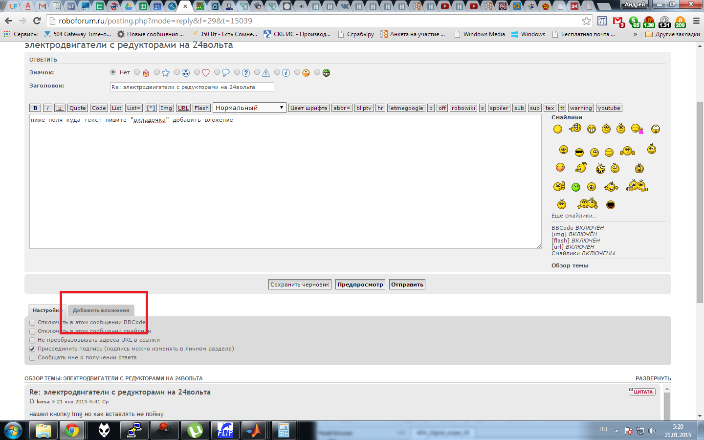 ниже поля куда текст пишите "вкладочка" добавить вложение