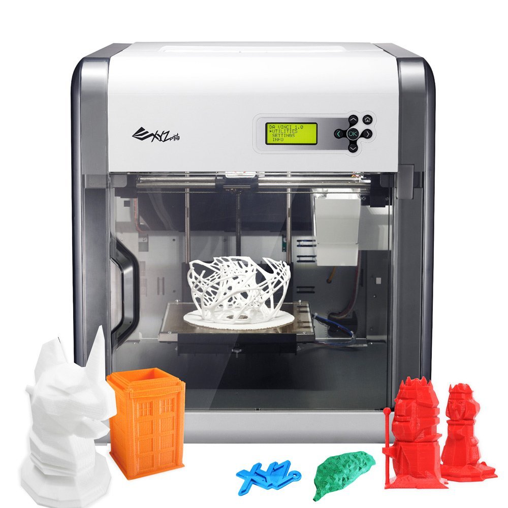 Настольный полупрофессиональный 3D-принтер, предназначенный для быстрогопрототипирования по технологии послойного наплавления (FDM). В качестве основного расходного материала используется экологичный, биоразлагаемый полилактид (PLA) или сополимер акрилонитрила с бутадиеном и стиролом (ABS). Максимальный размер области построения составляет 190x200x200 мм. Толщина наносимого слоя регулируется в пределах 100-400 мкм. Оснащен универсальным USB-интерфейсом. Данная модель имеет встроенный 3D-сканер. Бесконтактный метод 3D сканирования перспективен. Позволяет оцифровывать 3D объекты в трудно доступных местах, хрупкие 3D модели и 3D модели, представляющие историко-культурную ценность. Da Vinci 1.0 Aio Характеристики