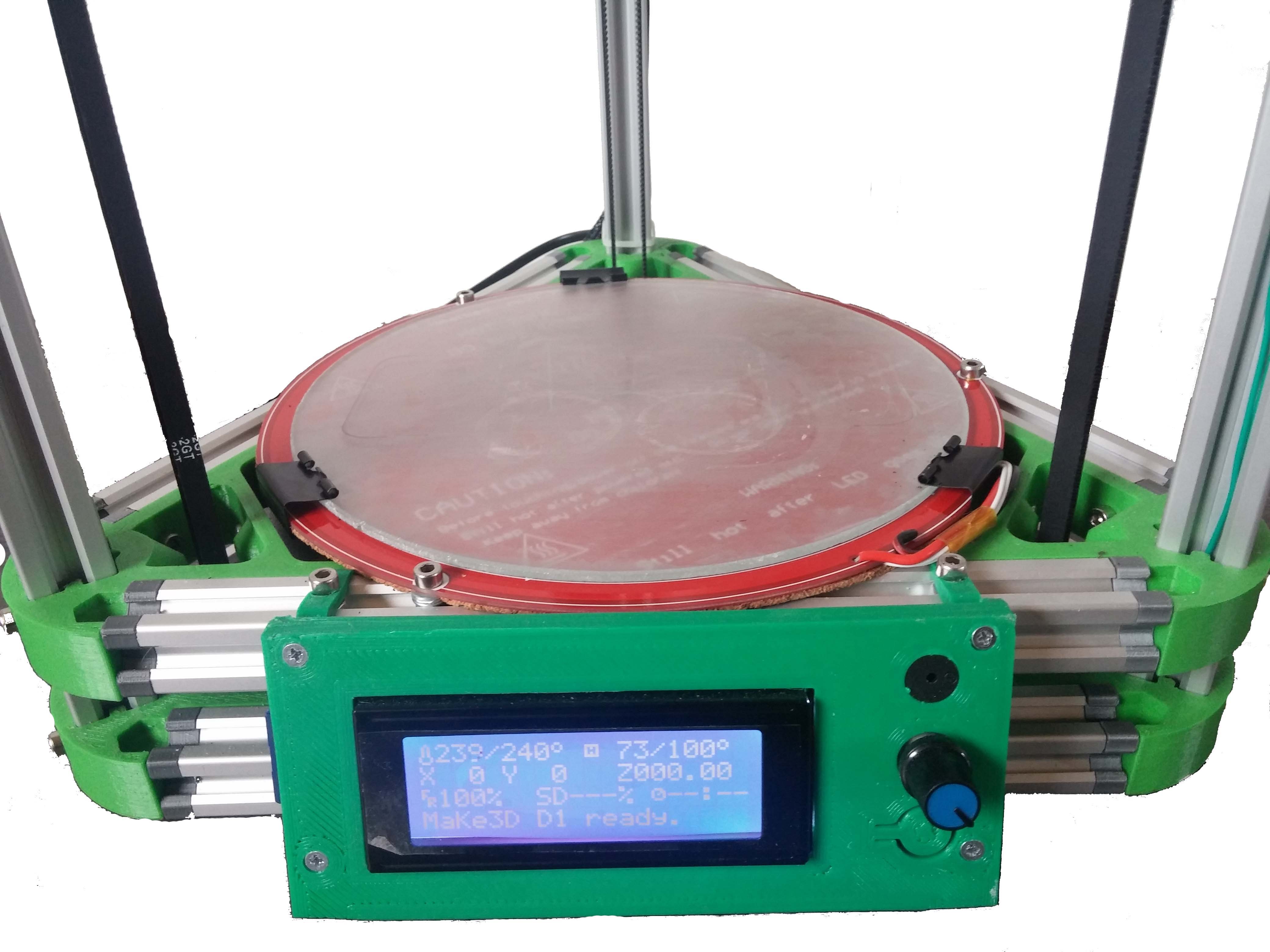 MaKe3D D1 - 3D принтер с кинематикой дельты. Принтер очень лёгкий и компактный, при этом область печати достаточно большая. Благодаря современной кинематике качество печати отличное, на уровне профессиональных 3D принтеров.