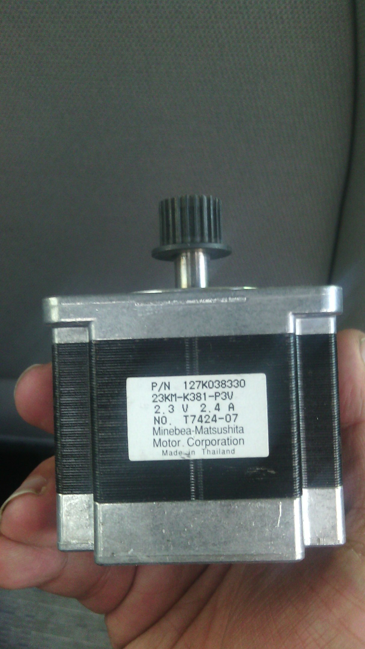 1,8 deg/step.ток 2.4 А,0.4 Ом.напряжение 2.3V.на оси зубчатый ремень (шаг 2мм ) в диаметре 14мм.