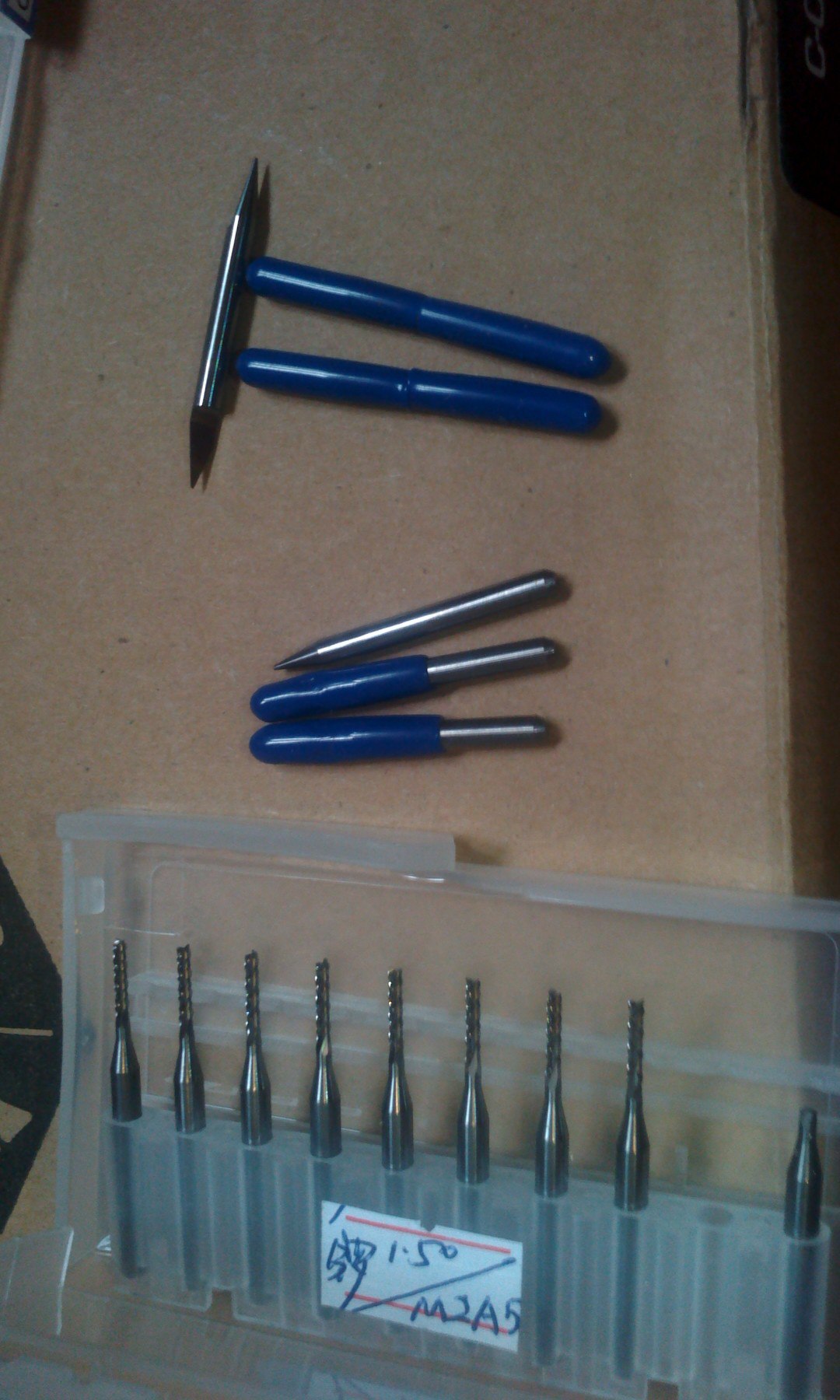 Лот 12. Фрезы "кукуруза" 1.5 мм 8 шт. (новые) , фреза конусная двухсторонняя 0.2 мм 3 шт. (слегка б.у), фреза конусная 0.4 мм (с размером не уверен, слегка б/у) 3 шт. Хвостовик 3.175 мм.
